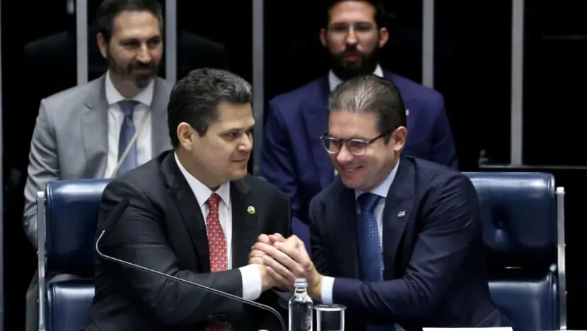 O presidente do Senado Davi Alcolumbre União AP e o presidente da Câmara dos Deputados Hugo Mot