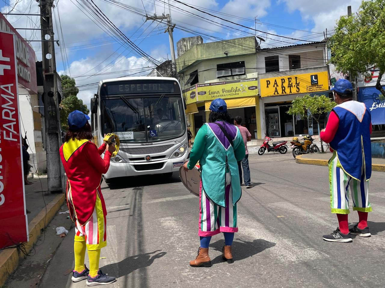 Agentes da secretaria e escoteiros acompanharam integrantes do Teatro de Educação no Trânsito pelas ruas do centro. A equipe abordou a população para enfatizar a prática de atitudes cordiais e respeitosas entre motoristas, ciclistas e pedestres, contribuindo com um convívio pacífico, e seguro para todos.
